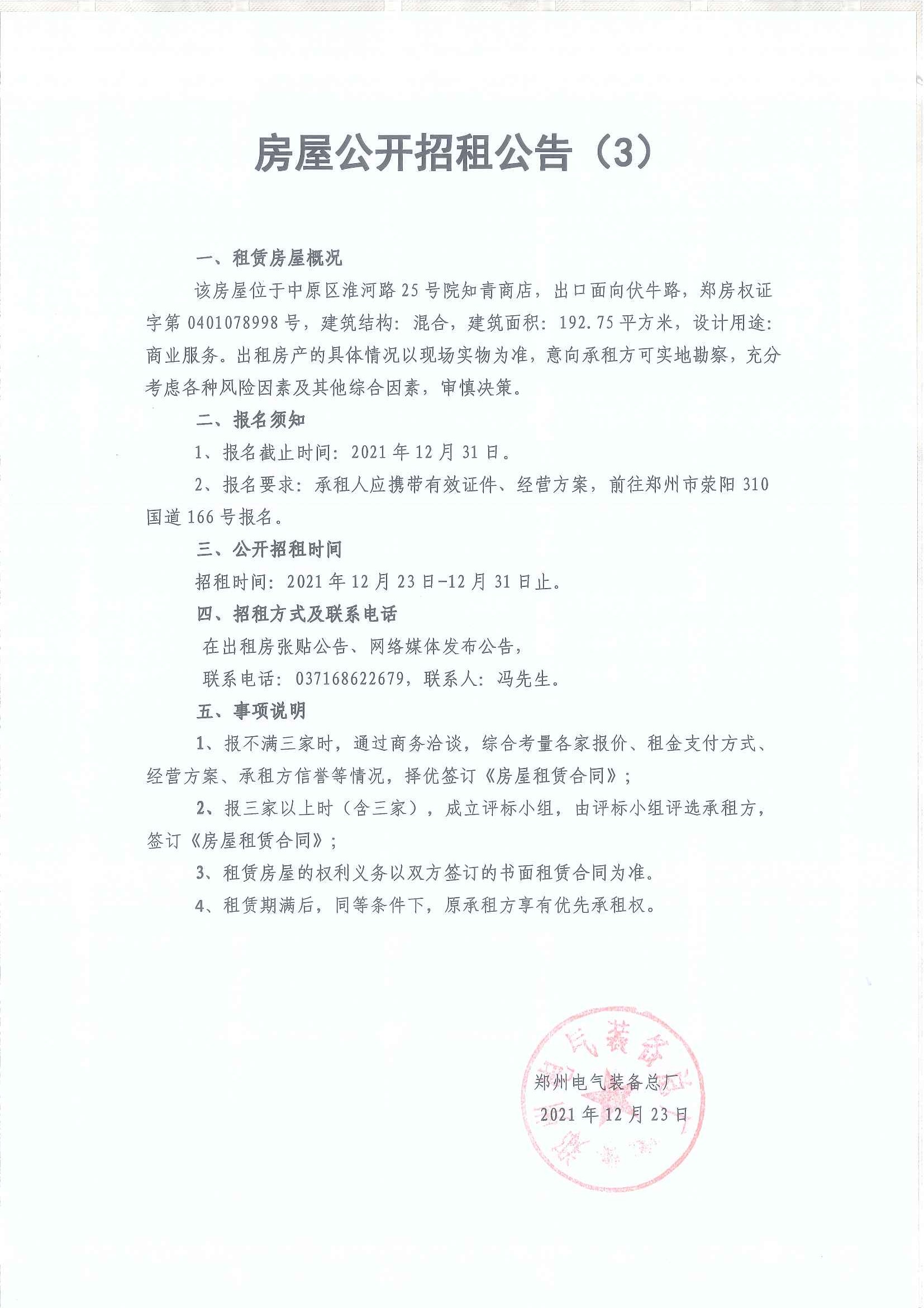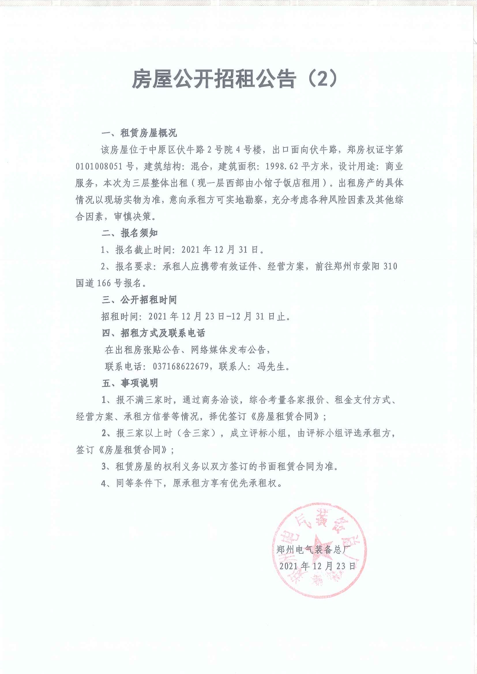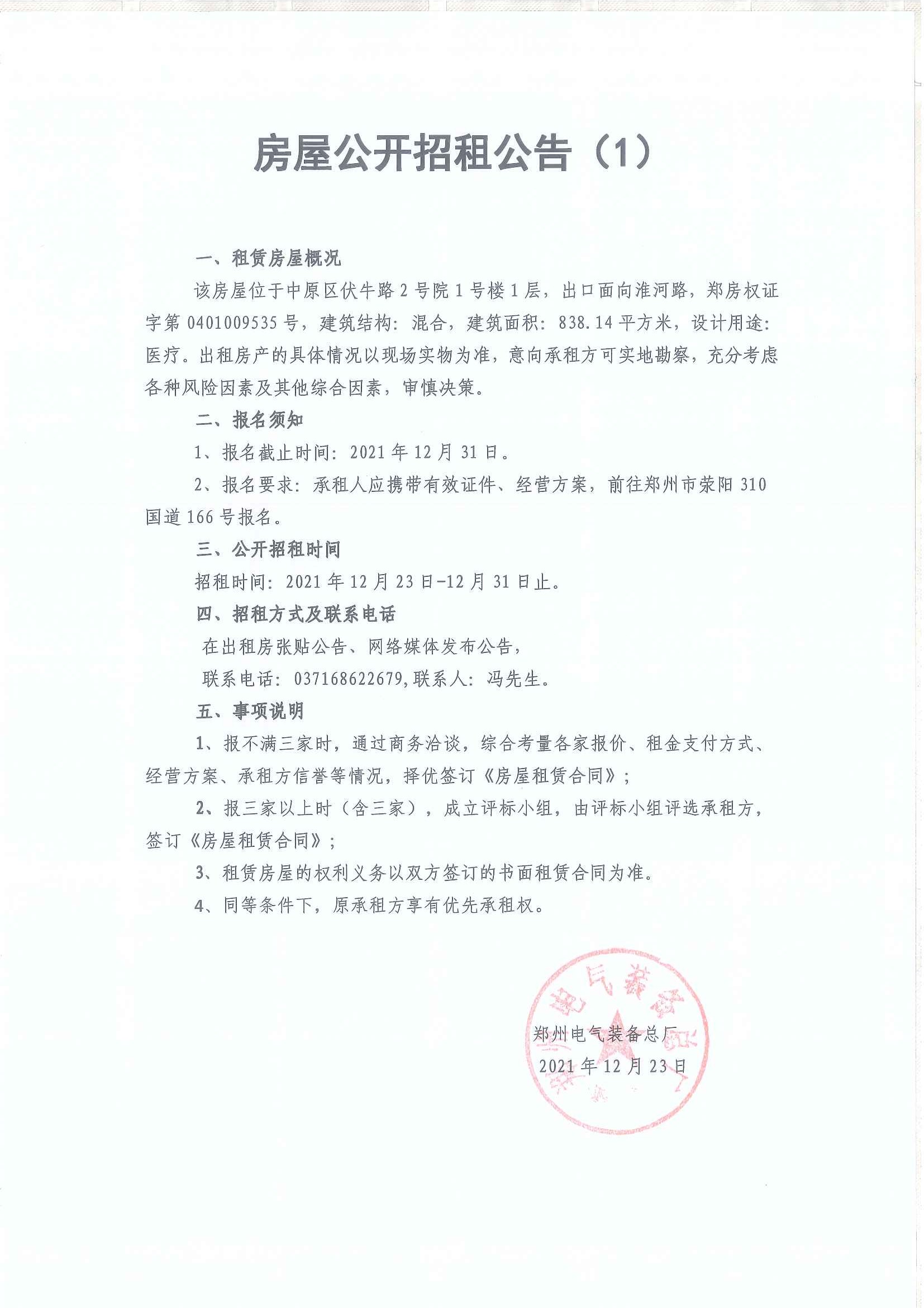 房屋公開招租公告